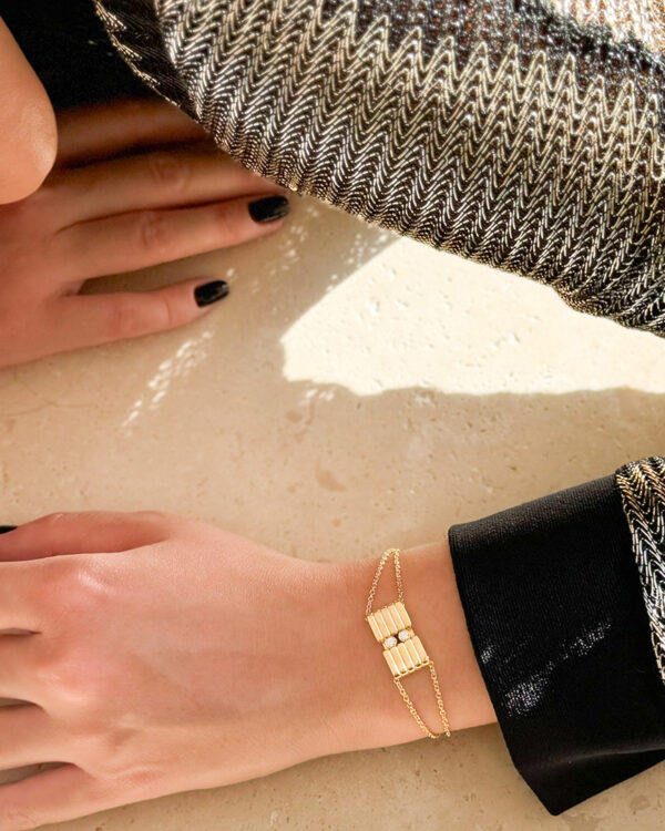 This hand-crafted piece is 1 micron 18 K gold plated on 925 sterling silver. Please keep your products away from chemicals and store them in their box or pouch when not in use.